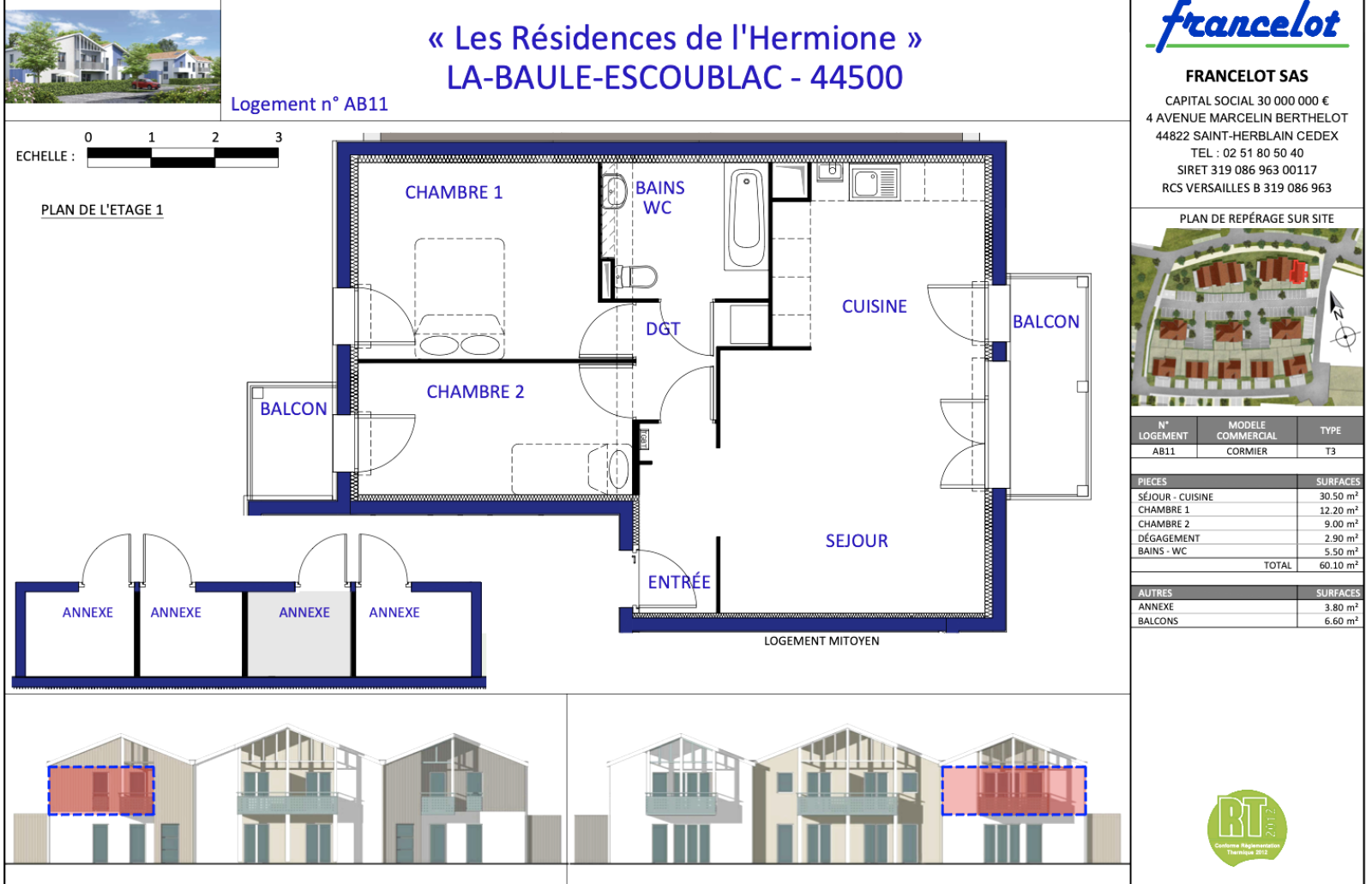 PROGRAMME NEUF AU COEUR DU GUEZY Découvrez votre futur chez vous! A quelques mètres de la gare de Pornichet, de la plage et des commerces, Appartement de 60M2 au 1er et dernier étage, comprenant une belle pièce de vie lumineuse, 2 chambres. Une annexe et place de parking.